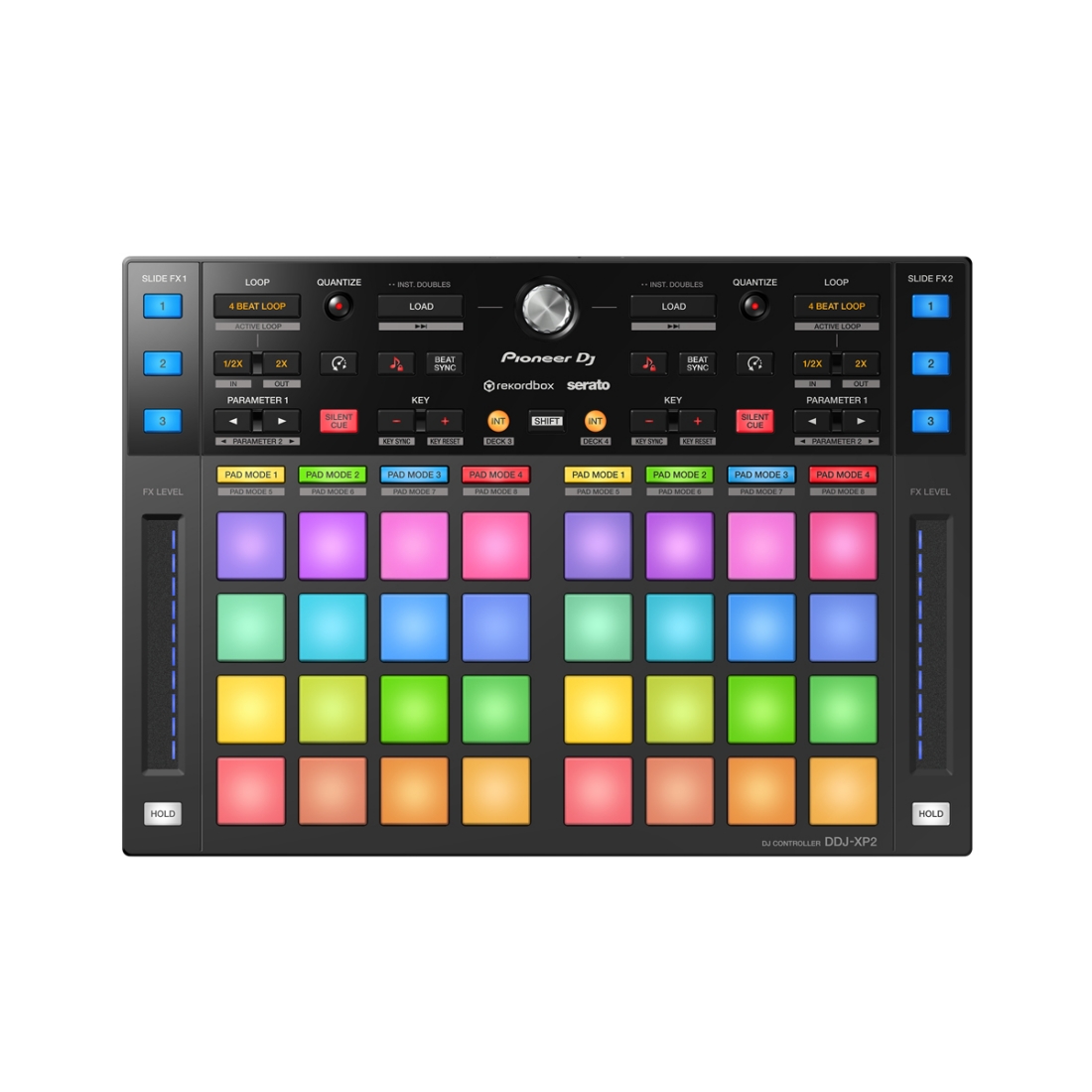 The DDJ-XP2 enhances your setup with 32 robust, multicolored Performance Pads, and puts powerful pad modes at your fingertips. Assign transport controls like play, pause, cue, and pitch up/down to the pads with Transport mode. Use 16 pads to control a single mode (a first for Serato DJ Pro). Trigger Silent Cue to soundlessly cue up tracks with the faders open on the mixer. Then instantly trigger them from Hot Cue points. And feel confident and in control during DJ performances thanks to the looping controls of our DJM-S9 flagship scratch mixer.